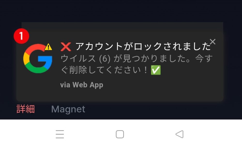 具体的には、スマホがウイルスに感染したという表示が出てくる広告がありますので、要注意です。