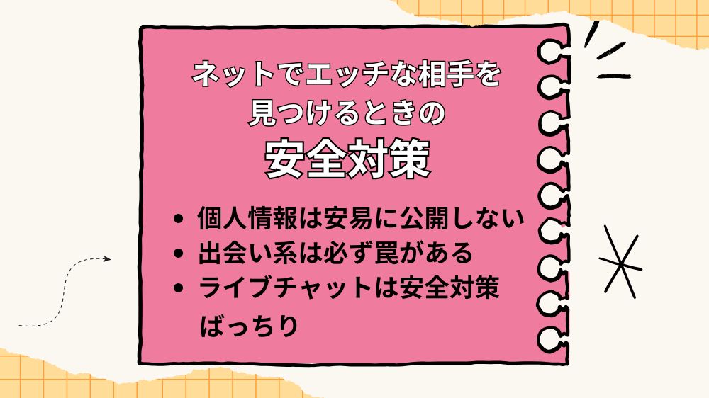 | ライブチャットの安全機能活用 | サイト内ビデオ通話を利用することで、電話番号やLINE IDを教えずに済み、匿名性を維持できる。運営による保護も受けられ、トラブルが激減する。 |